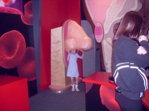 Once inside they were allowed to explore the different areas. This included a section of a huge head, which they could then slide down!