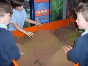 Next it was back to exploring the Centre. One of the most popular exhibits was the sand pit, where the children made large hills and on these hills an ordnance survey map was projected onto it!