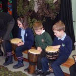 They heard the story of the Awongalema Tree. They had to draw and paint a beautiful, colourful tree. They also learned to play different percussion instruments to different parts of the story. The children also performed in the final performance of the story with singing dancing and playing the instruments.