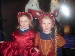 The children got to see what people ate in Medieval times in the Great Kitchen and how young boys had the job of turning the spits at the fire. They particularly enjoyed trying on clothes, playing the musical instruments of the time and having fun with the jester.