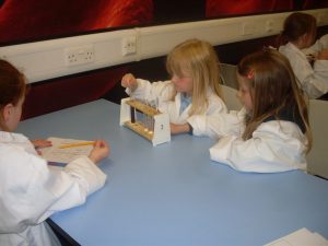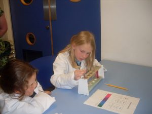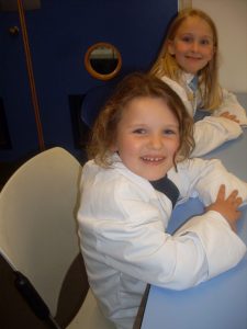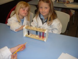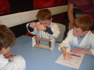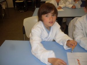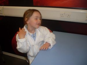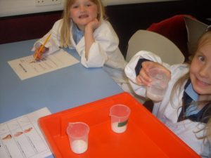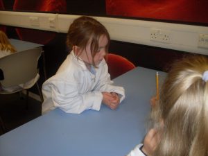 After lunch they put on lab coats and carried out a number of experiments related to our senses and  how liquids react with each other.