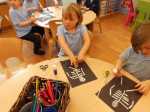 Making a Skeleton Picture at Halloween and Revising Bones of the Body.
