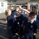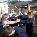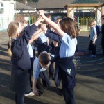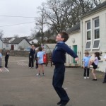 We were skipping today and were learning to run in and certain songs. We sang Jelly on the Plate, Sweeties in the Jar and Sausages in the Pan.
