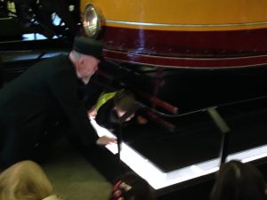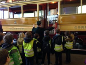 We started off with a tour with the Tram Man who guided us around the different trams showing us how they worked and how people had to board them and sit on them too. He also showed us their safety features with the help of Rhys who ended up being below one of them!