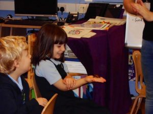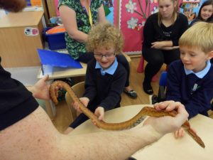 P1/2 were joined by Nursery today to be entertained by Zoolab.