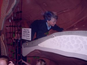 Once inside they were allowed to explore the different areas. This included a section of a huge head, which they could then slide down!
