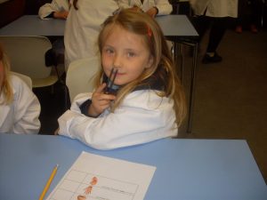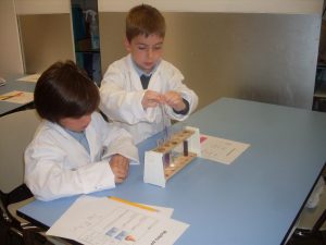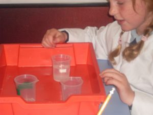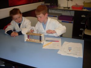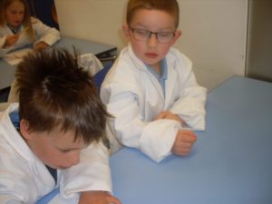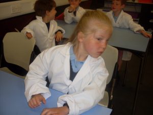 After lunch they put on lab coats and carried out a number of experiments related to our senses and how liquids react with each other.