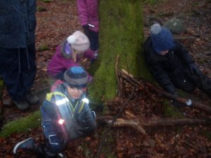 Finally we learned how to made square knots, which we used to help us make a freestanding den with a tripod. In all of these tasks we were learning the skill of working with others.