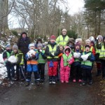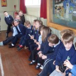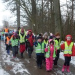 Today we started with a whole school walk around the Castle Drive. Even though there were snow flurries, off we went! On route Jim Dawson, a local farmer, Â kindly let us see his newborn lambs in his farm.