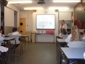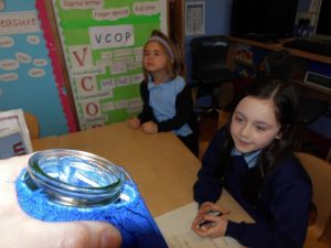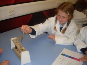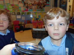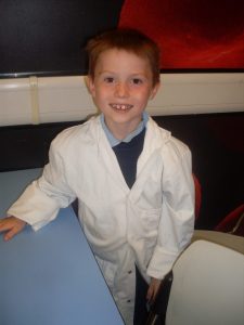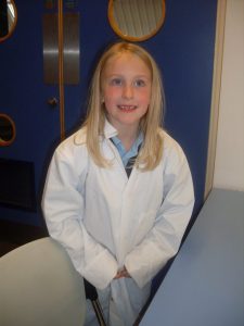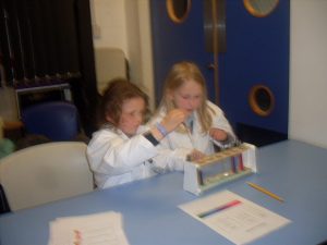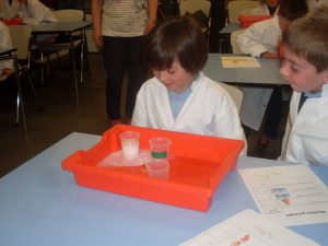 After lunch they put on lab coats and carried out a number of experiments related to our senses and  how liquids react with each other.