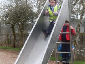 Once inside they were allowed to explore the different areas. This included a section of a huge head, which they could then slide down!