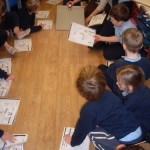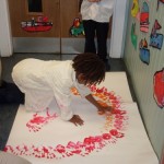 Everybody in P1/2/3 joined in and made a rainbow with painted hands. We did this after reading the story of Noah and the Ark.