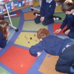 Some boys and girls moved the game of marbles onto the carpet, as they were moving so quickly along the floor. We discussed that there would be more friction on the carpet, so the marbles would be easier to control.