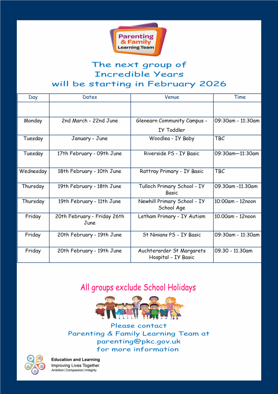 The Parenting and Family Learning Team have a range of Making Parenting Easier and Fun courses with their Incredible Years Programme. Please see the posters below. Please book via the Parenting and Family Learning Team.