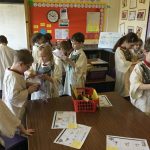 P3H are continuing to make great progress with their juggling balls craft and design project. This week, they learned how to tie dye to give their juggling ball material an interesting pattern. The tie dye will be the background for their circus-themed drawings on the balls that they designed last week.