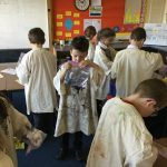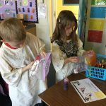 P3H are continuing to make great progress with their juggling balls craft and design project. This week, they learned how to tie dye to give their juggling ball material an interesting pattern. The tie dye will be the background for their circus-themed drawings on the balls that they designed last week.