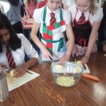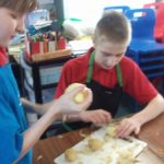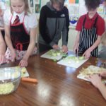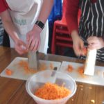 This morning we worked together to prepare and cook soup and shortbread for tomorrow afternoon’s Burns Supper. For the lentil and vegetable soup, we had to boil vegetable stock with red lentils to soften them. We had to peel and chop potatoes, grate carrots and dice leeks before adding them to the stock and lentils. The soup chefs did a marvellous job of preparing their ingredients and tidying and clearing the dishes. I can’t wait to taste the soup tomorrow!