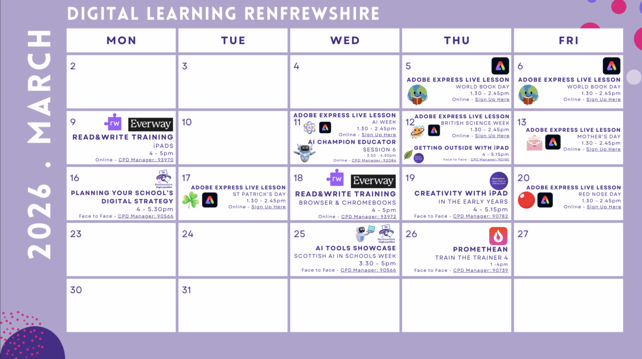 Our online Digital Learning Calendar has been updated with the live lessons available from the Adobe Express for Education team in March.