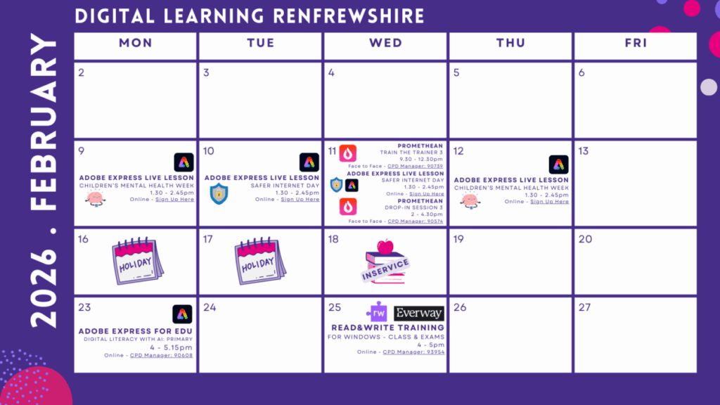 Most Digital Learning courses are available for booking on Renfrewshire CPD.