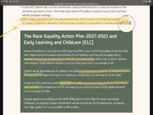 Diversity and equality policies have been embedded throughout the Curriculum for Excellence, policies such as Getting it Right for Every Child and the Scottish Attainment Challenge highlight educational aims of equity and opportunities for success and achievement. The 2017 National Improvement Framework network stated its aims to ensure consistent high quality education and effective teaching practice by providing learners opportunities to develop a broad spectrum of transferable skills, capacities, knowledge and understanding. Closing the poverty related attainment gap between those in the most and least deprived areas in Scotland is a priority because every child in Scotland deserves equal opportunities in their education and also because poverty, social circumstances and additional support needs such as not speaking English do create challenging barriers to learning in school and accessing the curriculum without appropriate support, resources and funding.