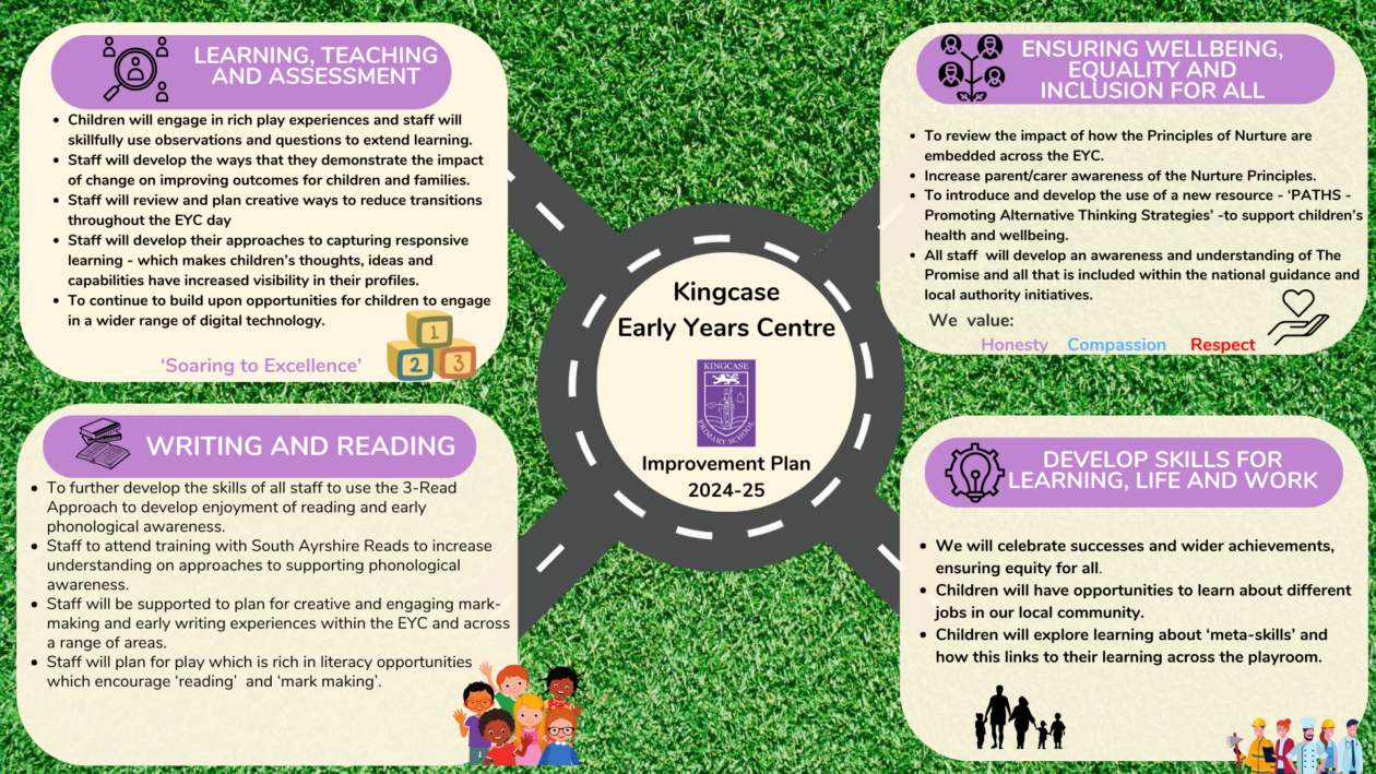 Firstly, I am incredibly proud to be the Head Teacher of Kingcase. Our Boys and Girls learn in an environment which is nurturing and exciting and where each adult’s high expectations of our children, mean that each child is encouraged to live our school motto which is ‘Soaring to Excellence’. At Kingcase our children enjoy a highly coherent and progressive curriculum both within the classroom and out with. Our Teachers and Support Staff know our children as individuals and ensure that their natural talents are developed, whilst also taking the time to sensitively encourage children to set targets for developing new skills.