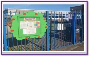 If you come outwith door opening hours please enter via the main school entrance where a member of the office staff will be happy to assist you. Please phone any absences into school office.