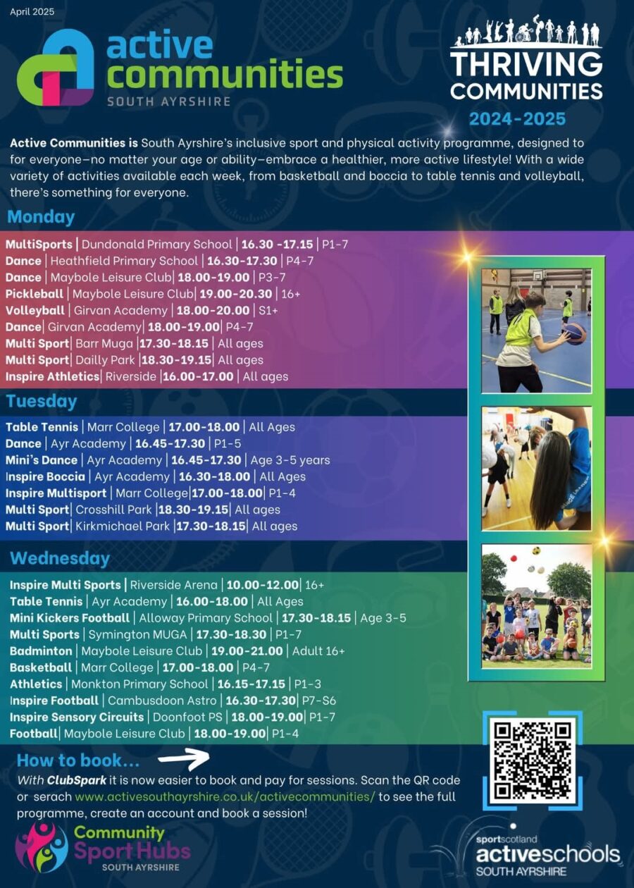 Please use the link below, which is now live, to view and book the Active Communities sessions for the Summer.