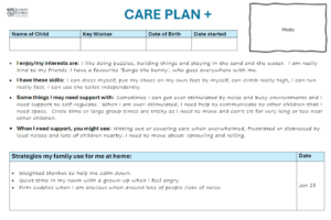 - Bear in mind that the length of time that the strategies are needed for or are effective for, will differ depending on the needs of the child. For example, if the child is distressed by loud noises (and this is a sensory sensitivity) this plan will most likely be in place for longer than if the distress is leaving a parent as they transition into ELC.