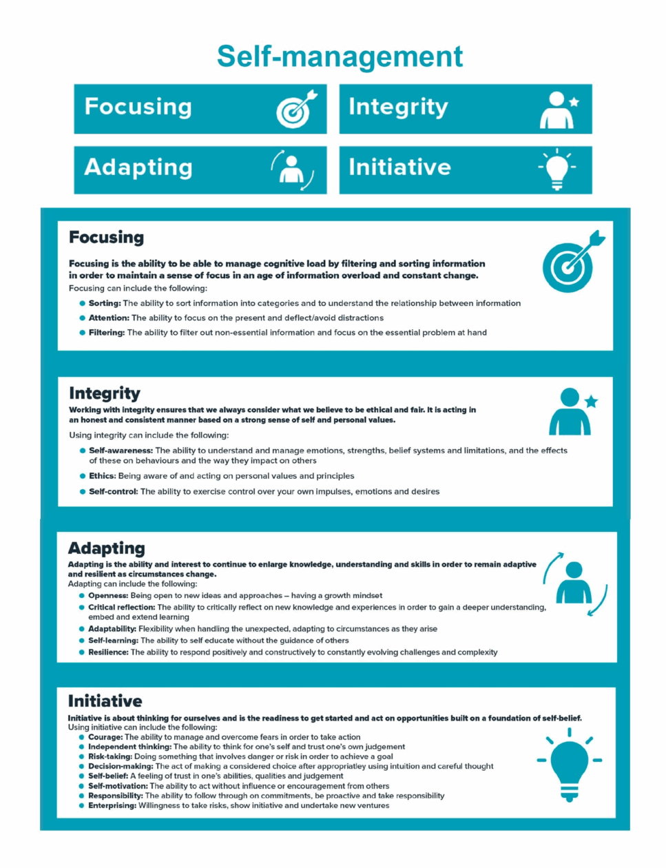- Being flexible and resilient when faced with novel or unexpected situation