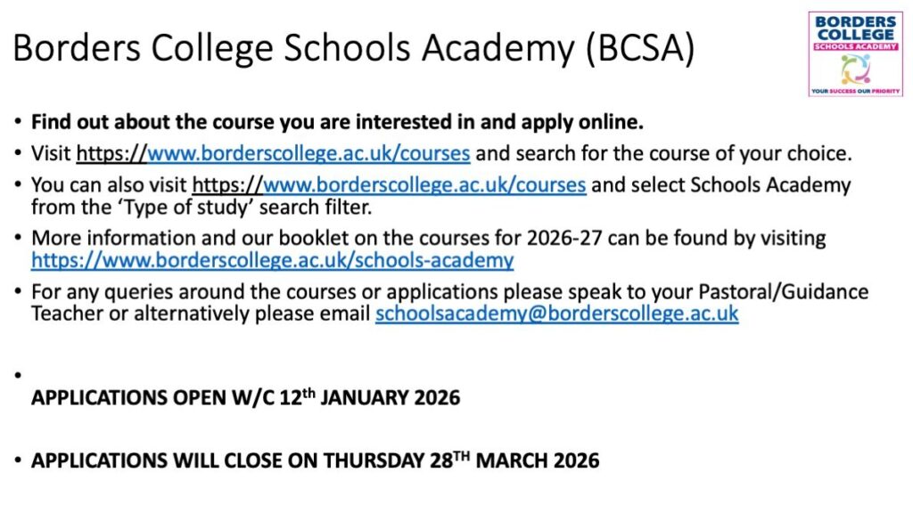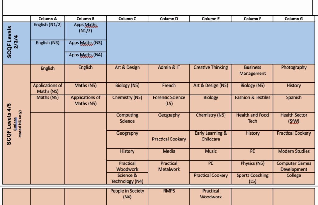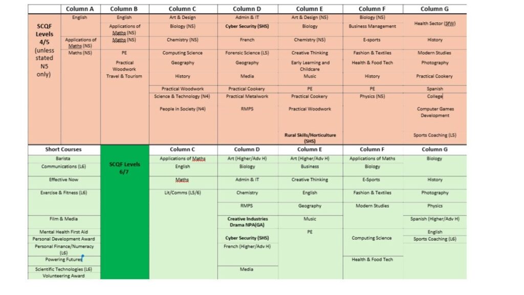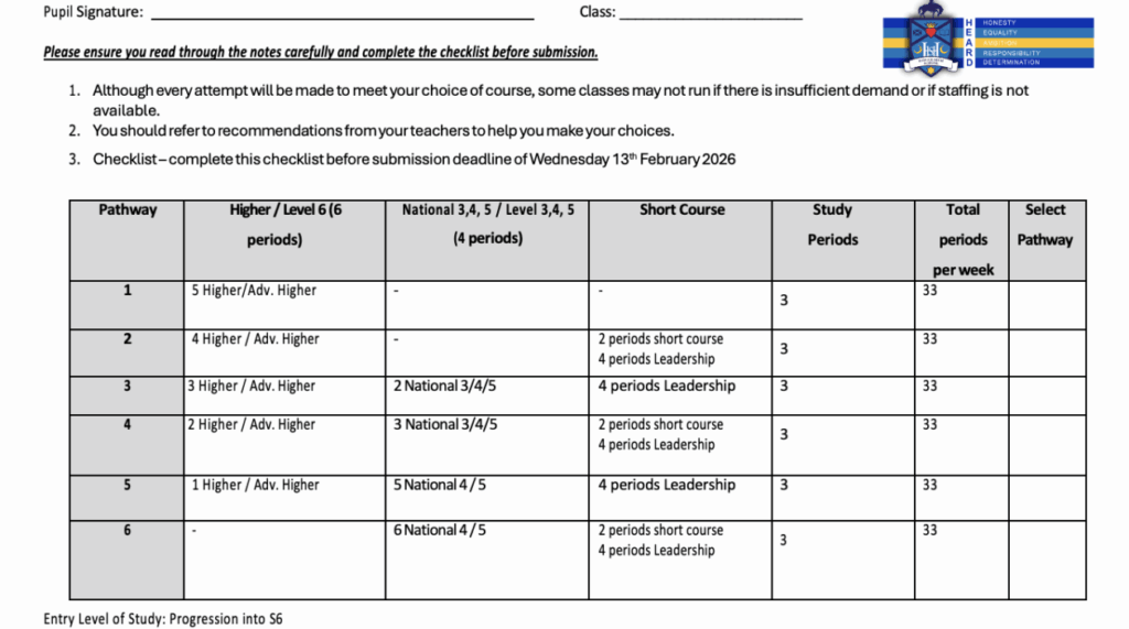 This page guides you through our new senior phase course choice structure, helping you understand the pathways available and what to expect from each subject on offer. You’ll find clear information to support informed decisions about courses, qualifications, and progression beyond school.