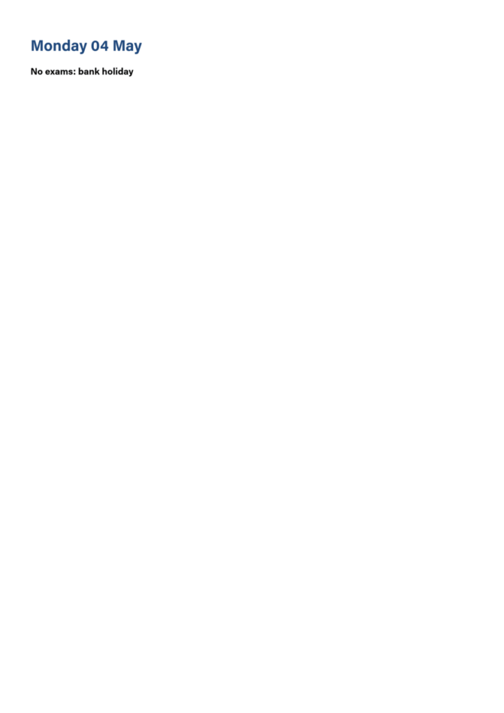 EASTER STUDY TIMETABLE
