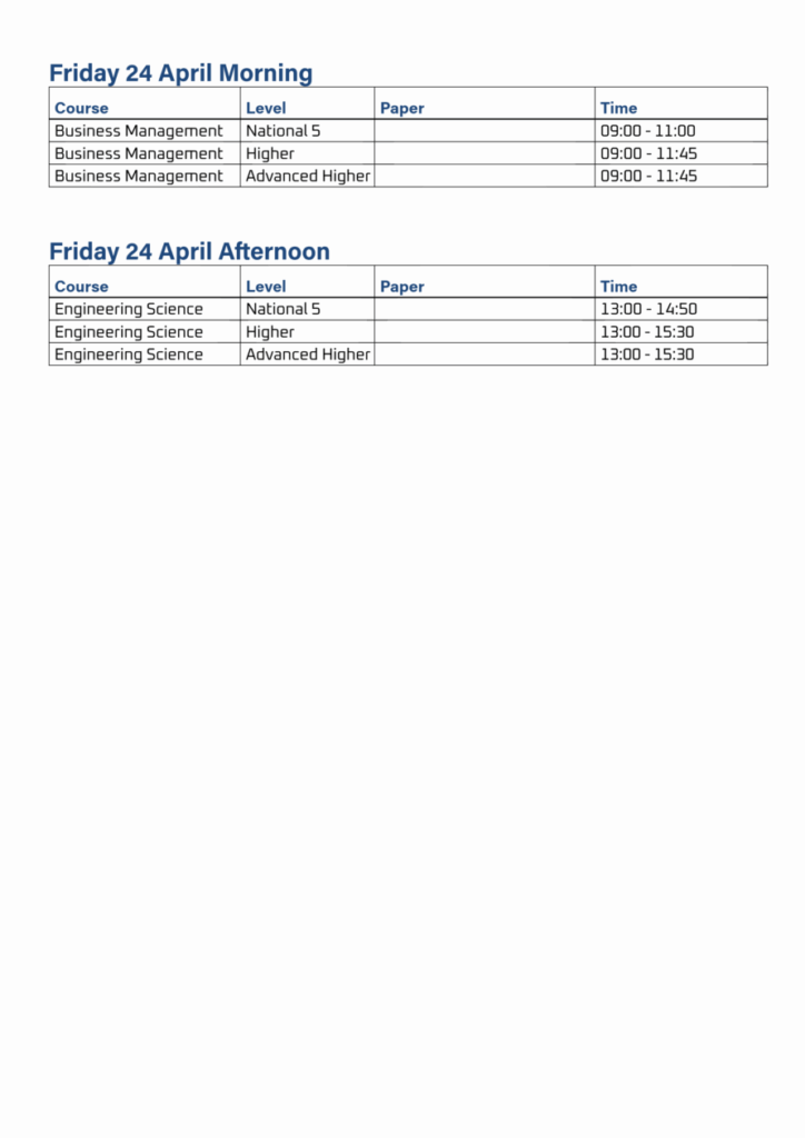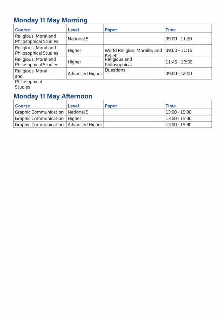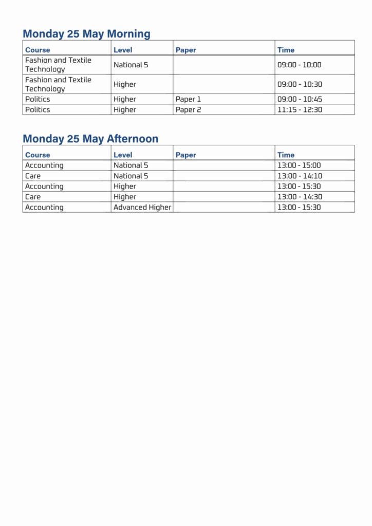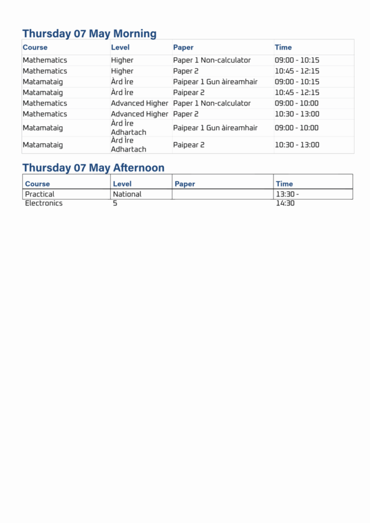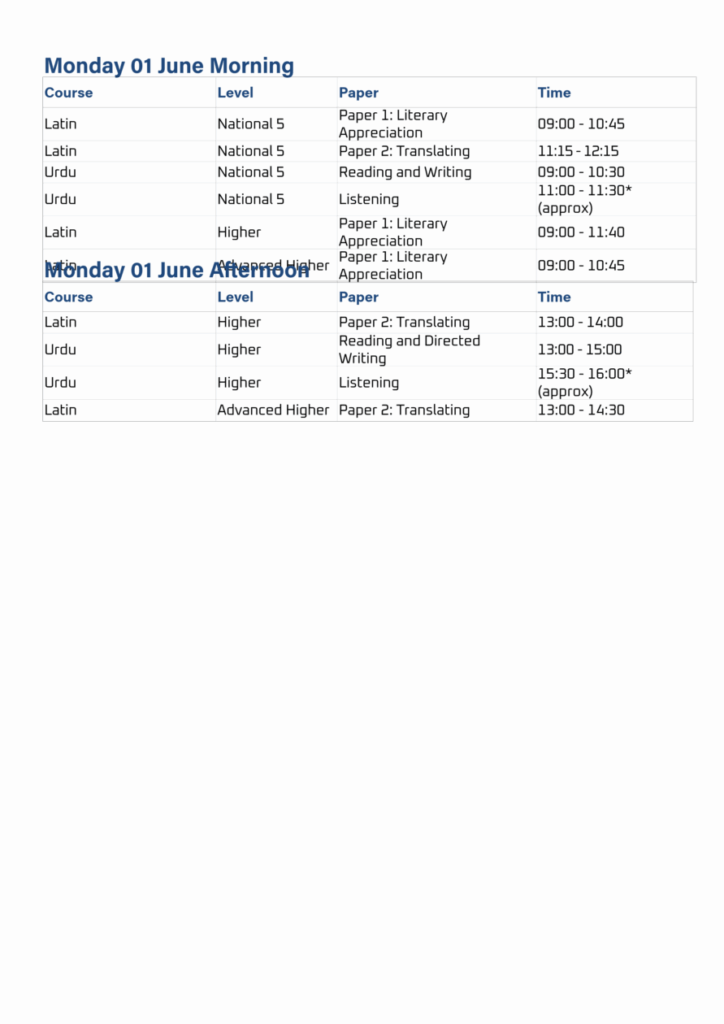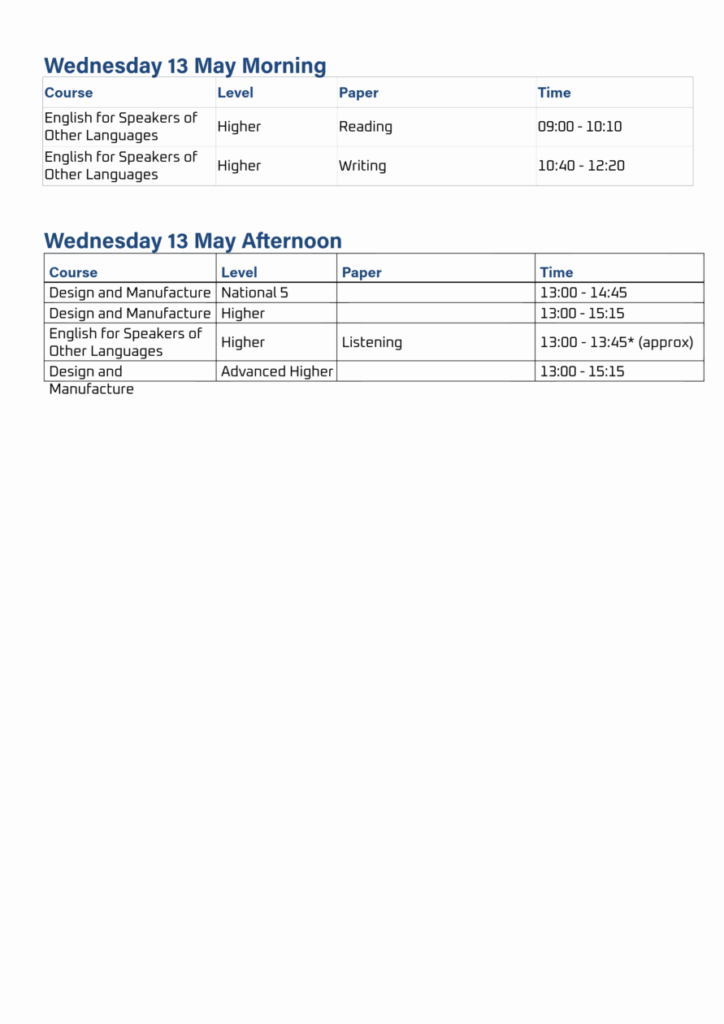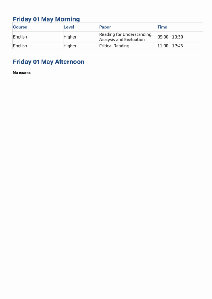Exam Timetable