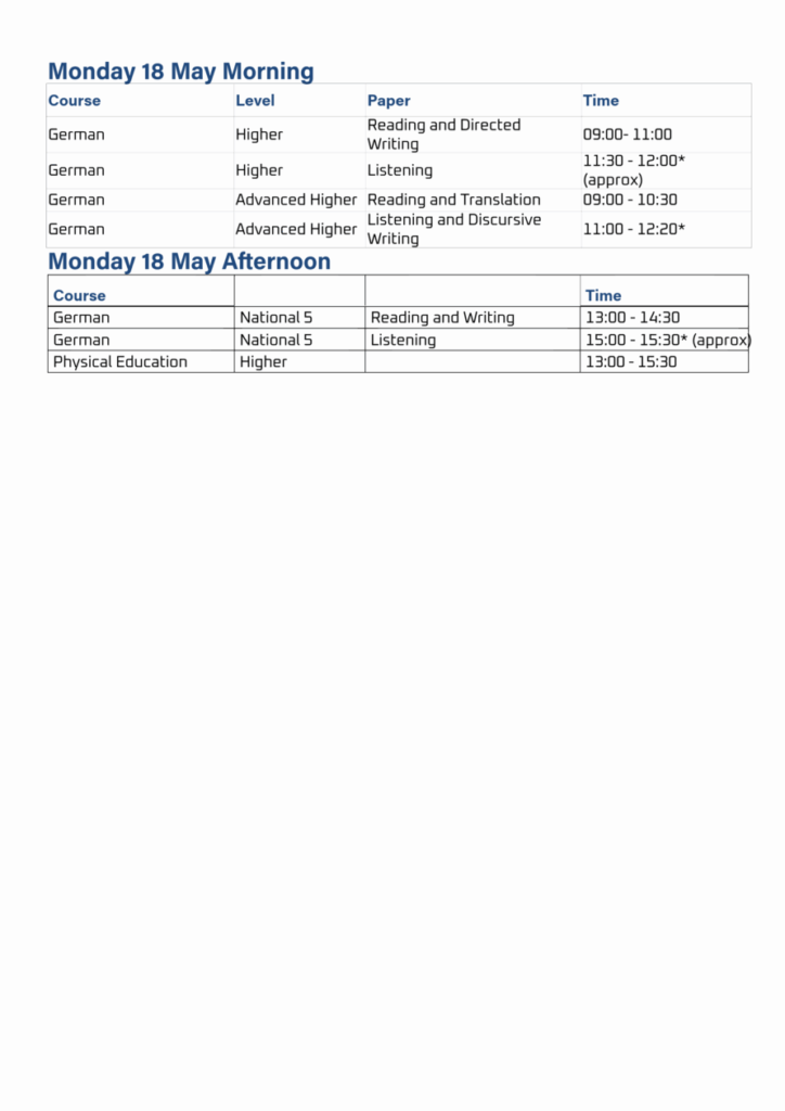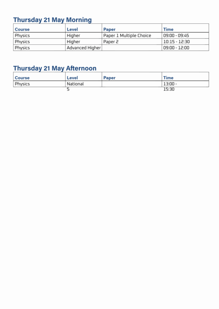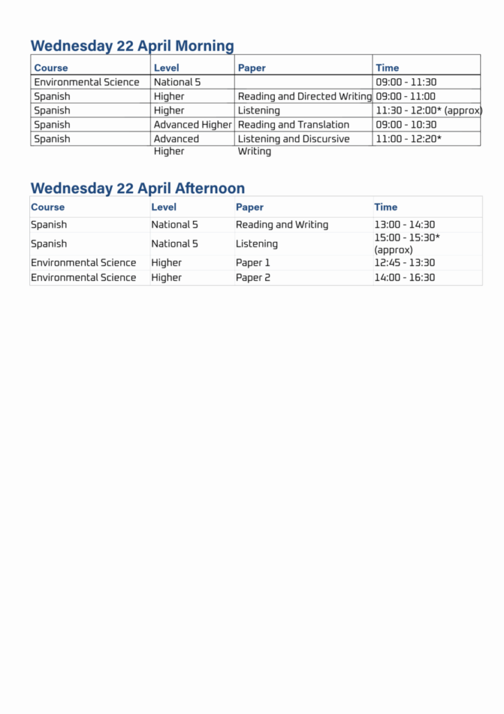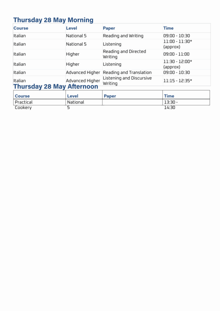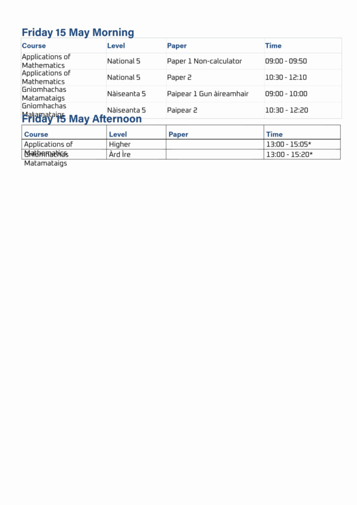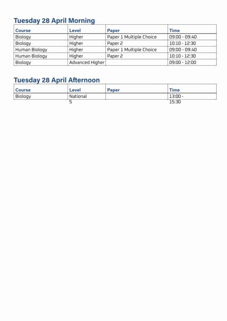 Exam Timetable