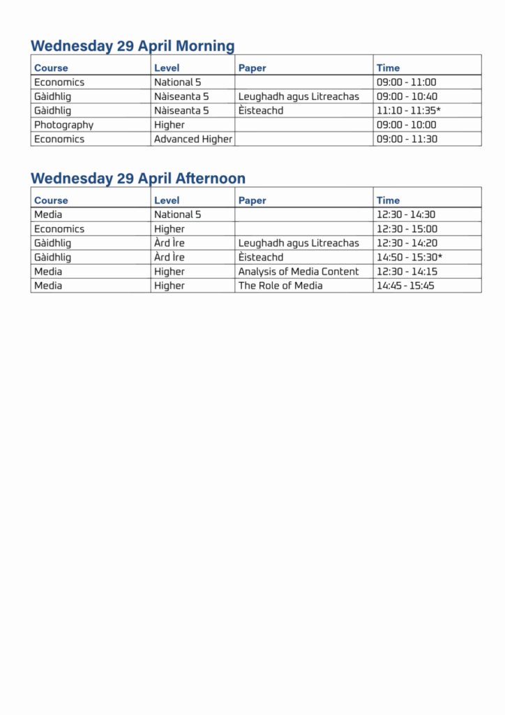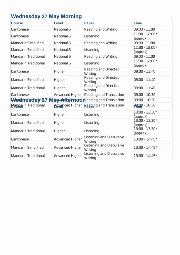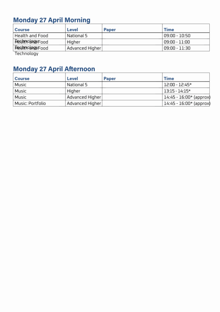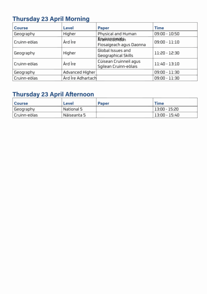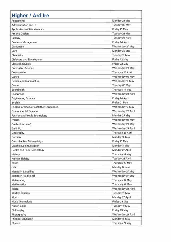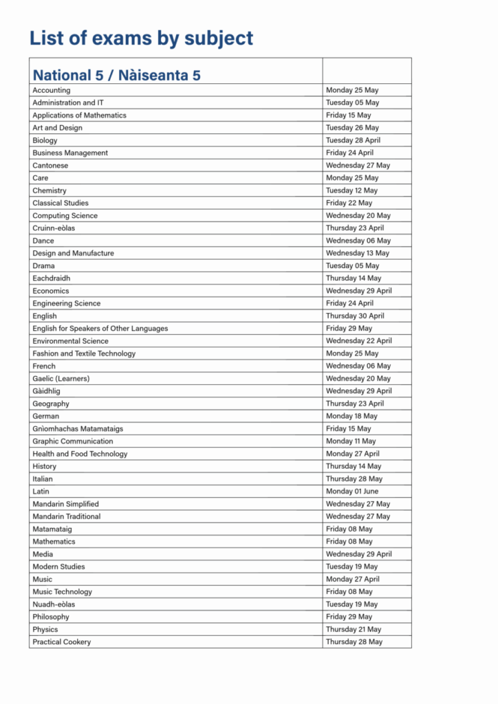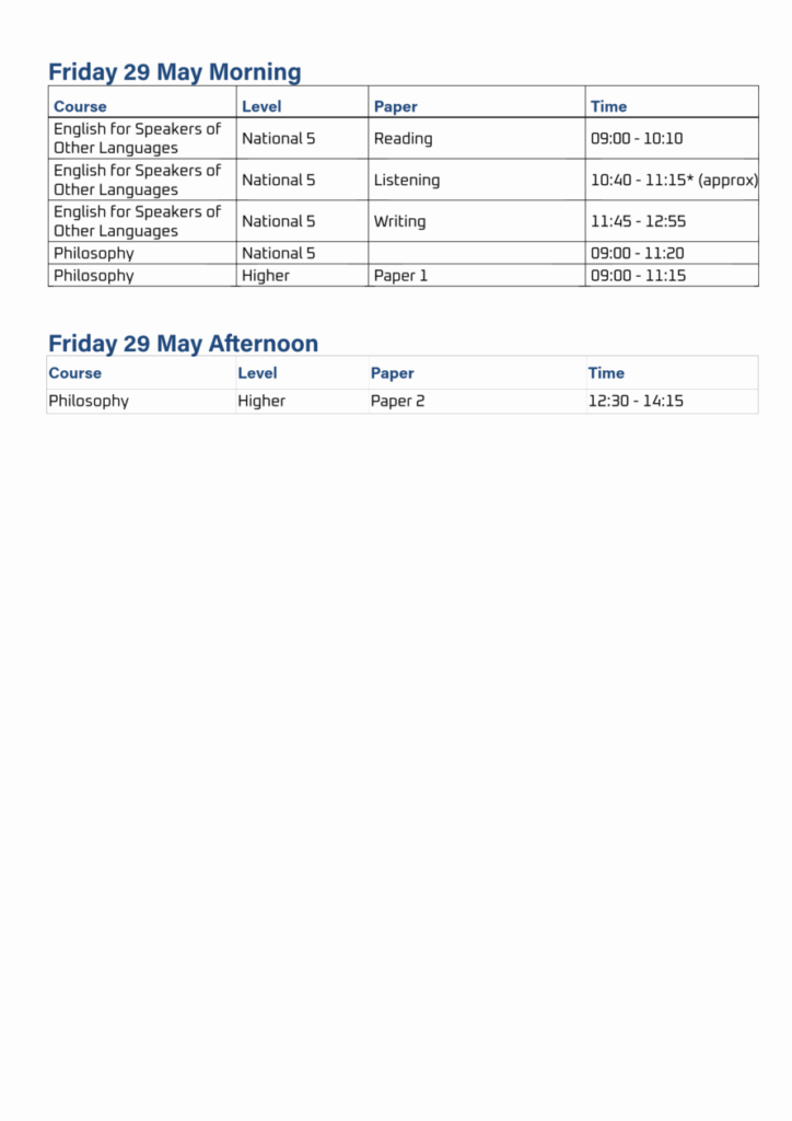 Exam Timetable