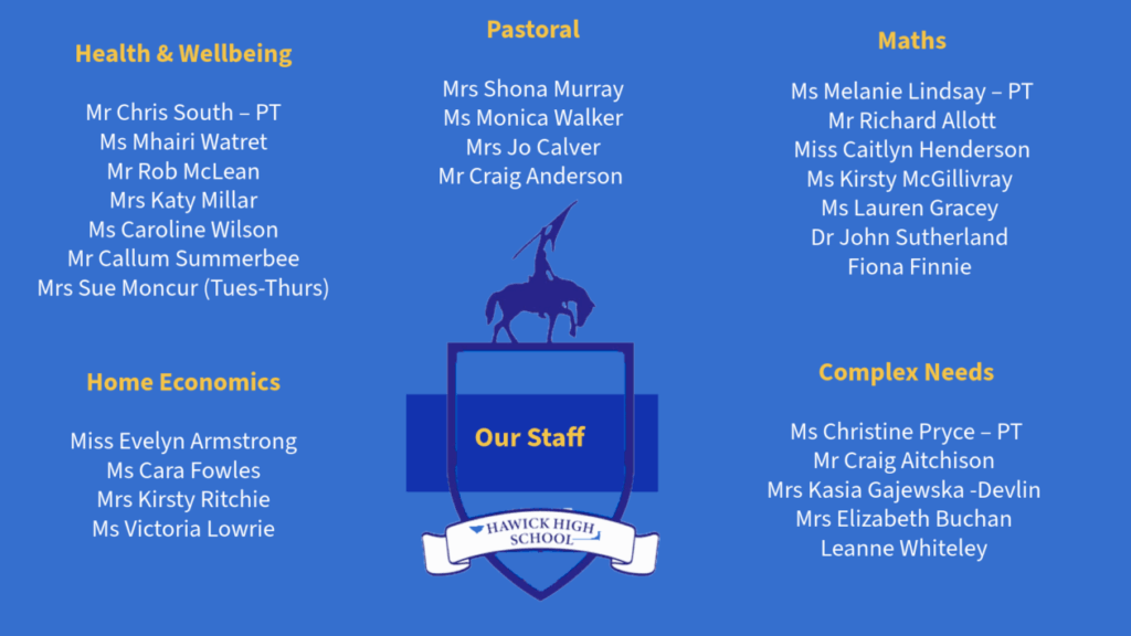 Explore who’s who across Hawick High, helping you get to know the people who make our school a welcoming, well-run, and inspiring place to learn.