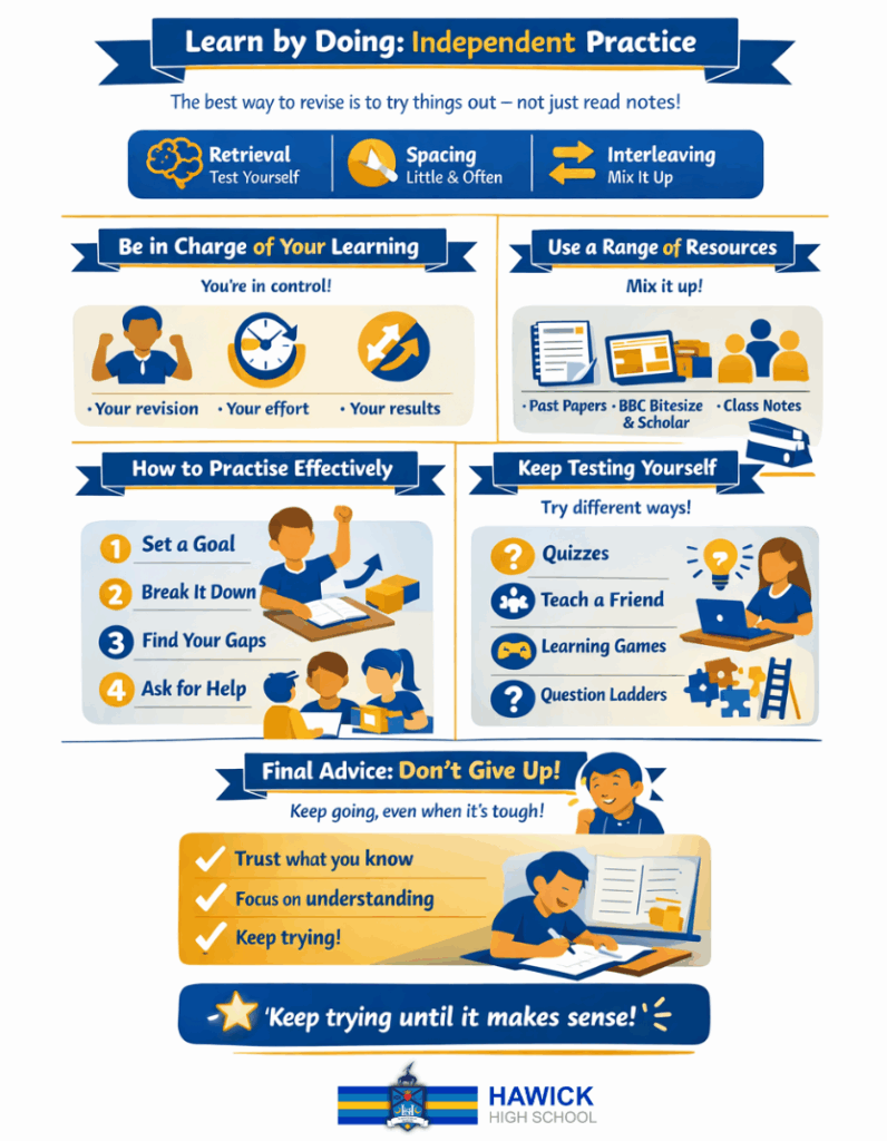 - Regularly update your revision folders or digital notebooks (e.g. OneNote or Showbie).