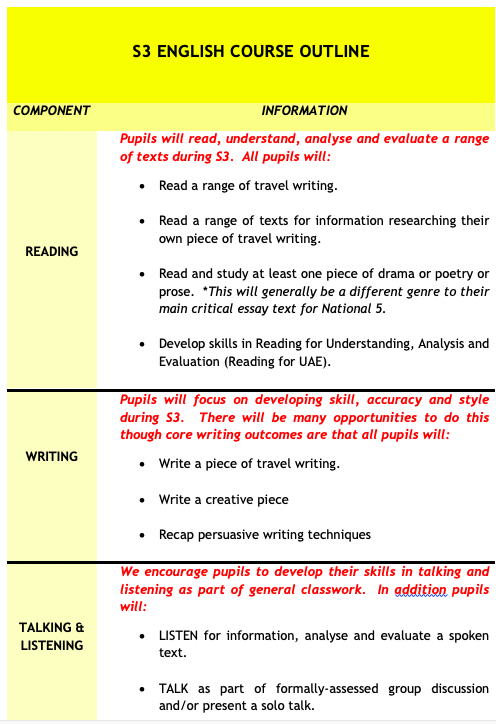 Information about S3 English at Peebles High School