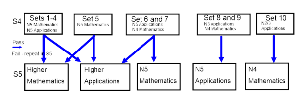 • N4 Mathematics: young people require a pass at N3 Applications of Mathematics (due to the small numbers of students involved, and to make this a viable option, placement is usually within an S4 class).