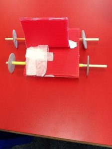 P4-P7 have made land yachts. The cars can ride very fast down the ramp even on the flat floor. Our land yacht is made out of something called corraflute and the axles are made out of something called doweling and the axles have straws on them so they can move with the wheels on them. The sail on our land yachts is made out of corraflute to but it is stuck on to the bottom with masking tape.