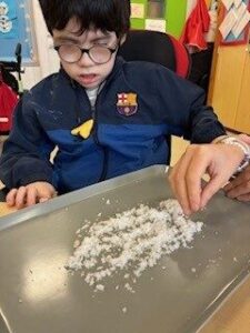 In class 4 we have enjoyed sensory stories this term.  We joined in using our talking buttons. We have also practiced making choices.