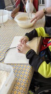 We have worked on environmental switches in the kitchen to help mix up cookies and pancakes.