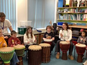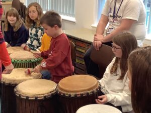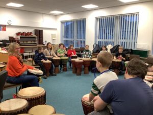 We have also enjoyed learning to play the African Drums with Joy.