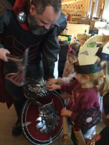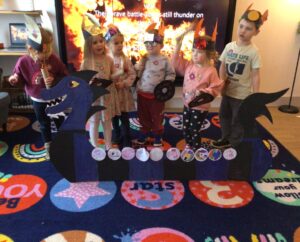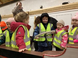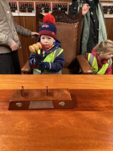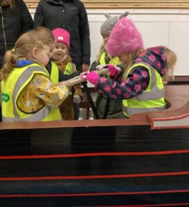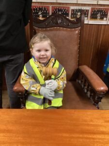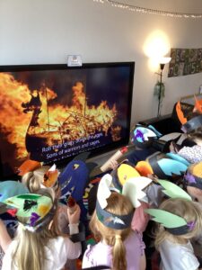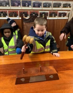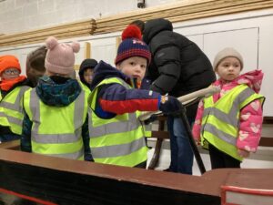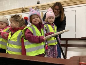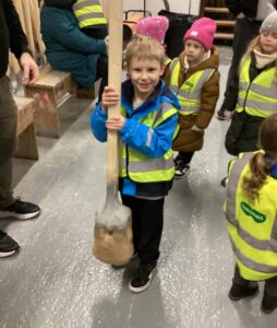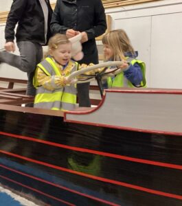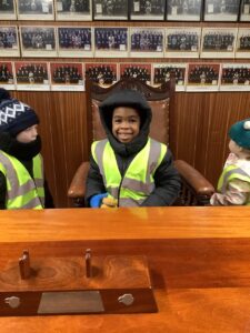 We were very lucky to get an invite from the UHA Committee to visit the Galley Shed prior to UHA Day. Children wore their hi-vis vests and used their road safety knowledge to make our way to the Galley Shed. We split into groups and took it in turns to be shown various areas of the Galley Shed. We got to see the galley boat which was almost finished, the children enjoyed discussing the colours and design of the galley and taking turns to be the driver! Children were able to hold the torches which were then used in the UHA procession and watched a video all about previous years which told the story of UHA. Everyone had the opportunity to go into the Committee meeting room and sit in the Jarl’s chair!