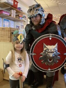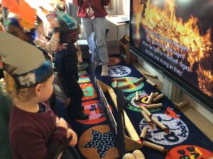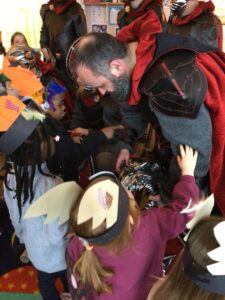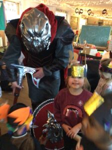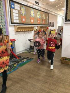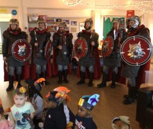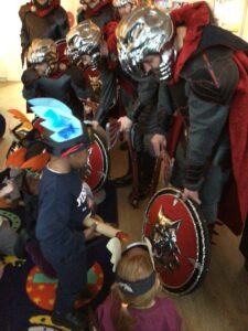 The children have been really engaged whilst learning about Up Helly Aa at Nursery. We got the opportunity to join the rest of our school community to see the visiting Junior and Senior Jarl Squads. The children got involved in singing the Up Helly Aa song, clapping and cheering as they entered the hall. Some of the vikings came to nursery and the children got the chance to explore their suits and get pictures. The children wanted to have their own procession in Nursery, marching and roaring, we got our galley out which the children had decorated and the children threw their torches in to ‘burn’ our galley just like the real one.