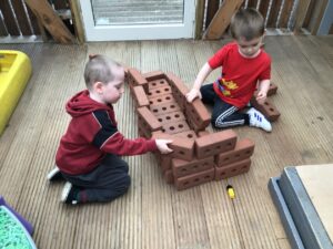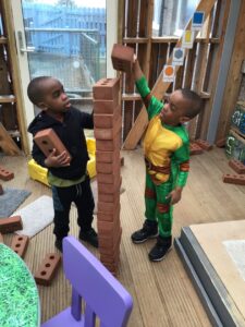 “Do you want to build a tower”? “We’ve made a boat”. “Let’s knock them over”. “This is very tall, you have to hold it”. “That was awesome”!