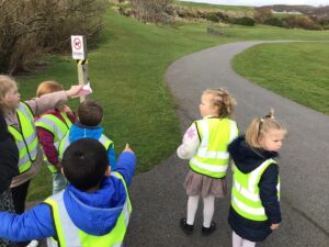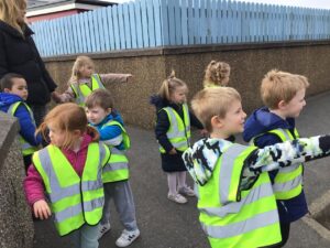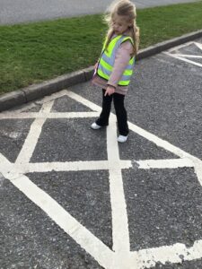 On a walk in our local community the children were encouraged to identify 2D shapes in everyday objects. We saw a stop sign with 8 sides, the children suggested it was a hexagon. We spoke about how a hexagon has 6 sides and an octagon has 8 sides”.