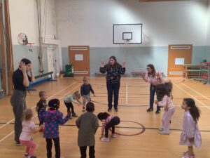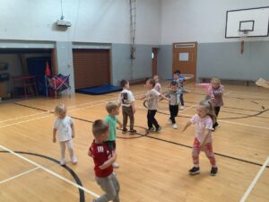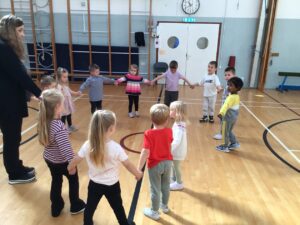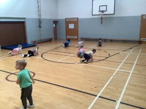 The children have had great fun being active in the gym hall. They have enjoyed the freedom to move around the open space when performing different movement skills while also listening and responding to the signal to stop. We have also used our time in the gym hall to be energetic when participating in circle games and action songs.
