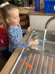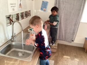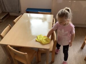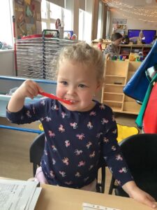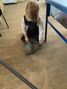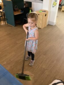 Children are always busy building on their independence skills and life skills through play and becoming familiar with the daily routines at Nursery.  They’ve been helping to sweep up the sand and craft areas, discussing hand washing, tidying up after snack, toothbrushing and helping staff to prepare for lunch by counting out the cutlery.