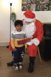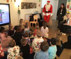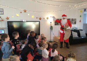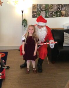 We had a special visit from Santa during our Christmas party.  Children sang Jingle Bells to welcome Santa and did so well collecting their gift from Santa and waiting with their friends for their turn.