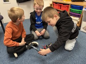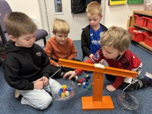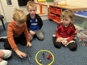 The children particularly enjoyed using a two-pan balance alongside non-standard units (multilink cubes) to investigate and compare the weight of each toy animal.